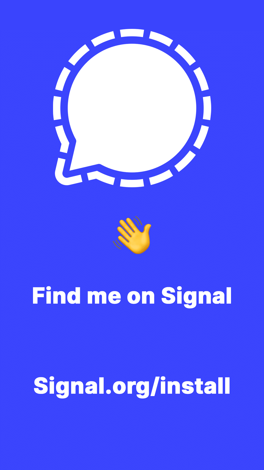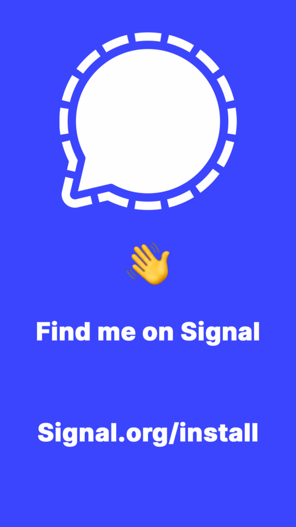 Passons à Signal. Vous pouvez télécharger l’application sur https://signal.org/install