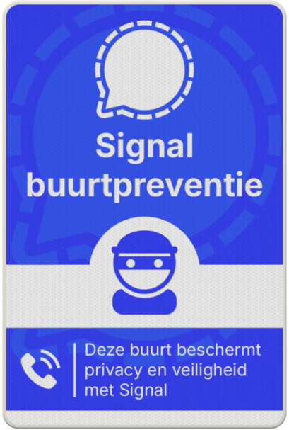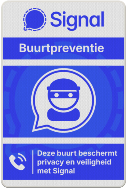 Daarom hebben we de handen ineengeslagen met de grootste bordenfabrikant van Nederland en Signal-buurtpreventieborden en -stickers ontworpen. Zo hoeven Signal-groepen zich niet langer kenbaar te maken met een bord van een concurrerende, data-verzamelende app.