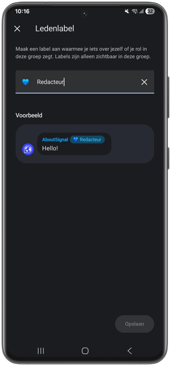 Signal heeft een nieuwe functie toegevoegd: ledenlabels. Met labels kun je in groepen een korte omschrijving over jezelf of je rol geven.